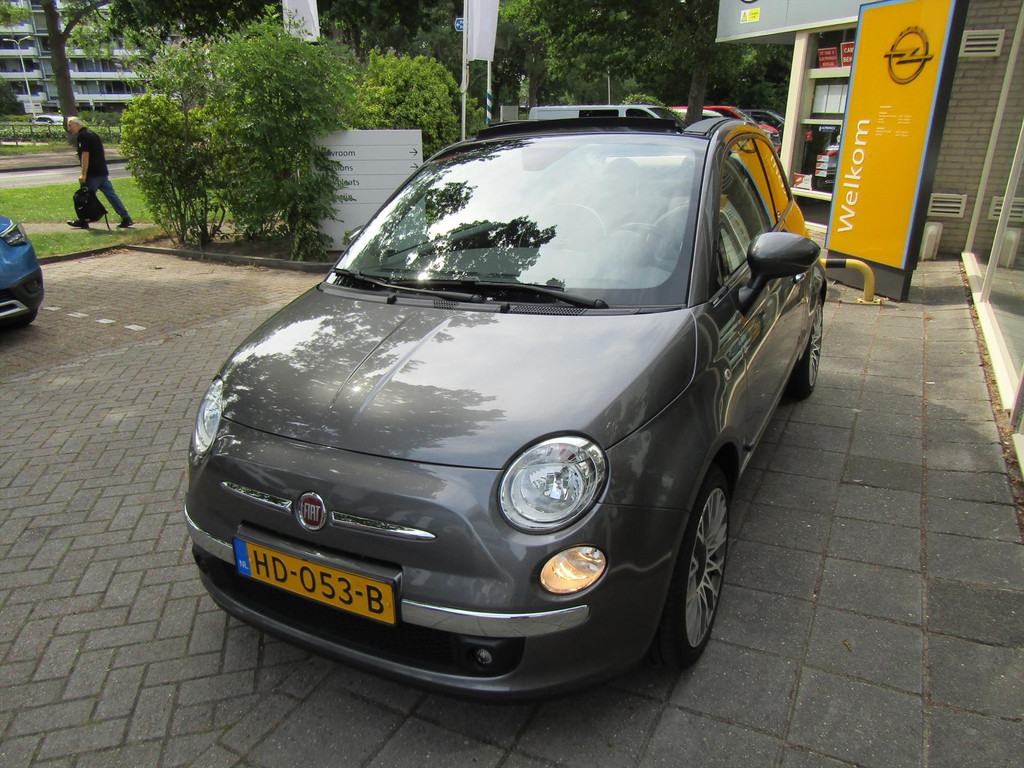SPORTIEVE FIAT 5OO CABRIO MET AUTOMATISCHE AIRCO, BLUETOOTH, ELEKTRISCHE KAP EN LICHT METALEN VELGEN.