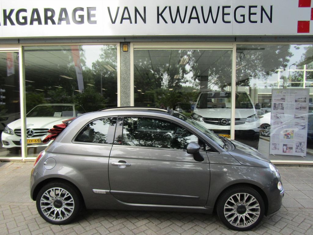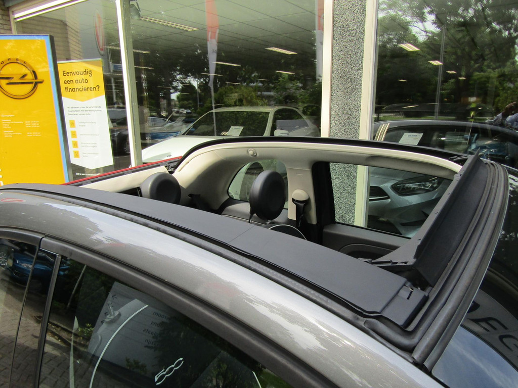 SPORTIEVE FIAT 5OO CABRIO MET AUTOMATISCHE AIRCO, BLUETOOTH, ELEKTRISCHE KAP EN LICHT METALEN VELGEN.